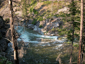 While I was there, one of the students mentioned that there were a couple wolves in the area that a teacher was studying. When I left that morning it was hot out. I sat down for a break in the shade. While I was sitting there I looked up and saw what looked like a German Shepherd trotting down the trail towards me. It was a wolf and it didn't notice me until I said something aloud. It looked up and casually loped up the hill. Back walking again less then an hour later, there was another wolf coming down the trail again, this time it was the female. Crazy. An hour later, I was walking near the river and I heard a crash in the willows and looked up to see a black bear running up the hill.